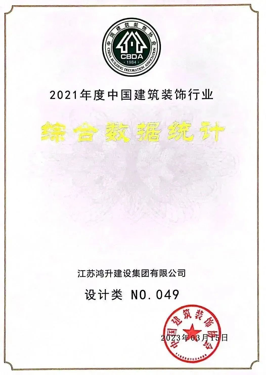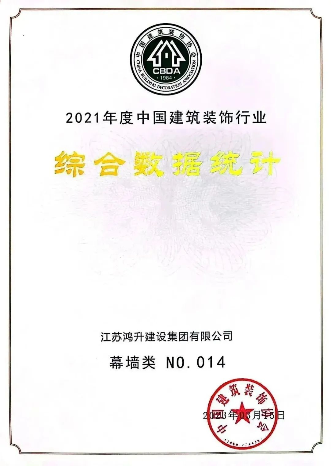 此次综合数据统计工作分为装饰、幕墙、设计、建材四类,较上一年度鸿升集团榜单排名幕墙类提升2名、装饰类提升6名。